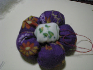 CUANDO HAYAS TERMINADO DE HILVANA LOS 5 PETALOS, LO VAS A COMENZAR A JALAR HASTA QUE QUEDEN FRUNCIDOS LOS PETALOS, ASI DEBE DE QUEDARTE.