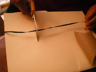 CORTAMOS CINCO TIRAS DE LISTON DE 6 CM. DE LARGO.