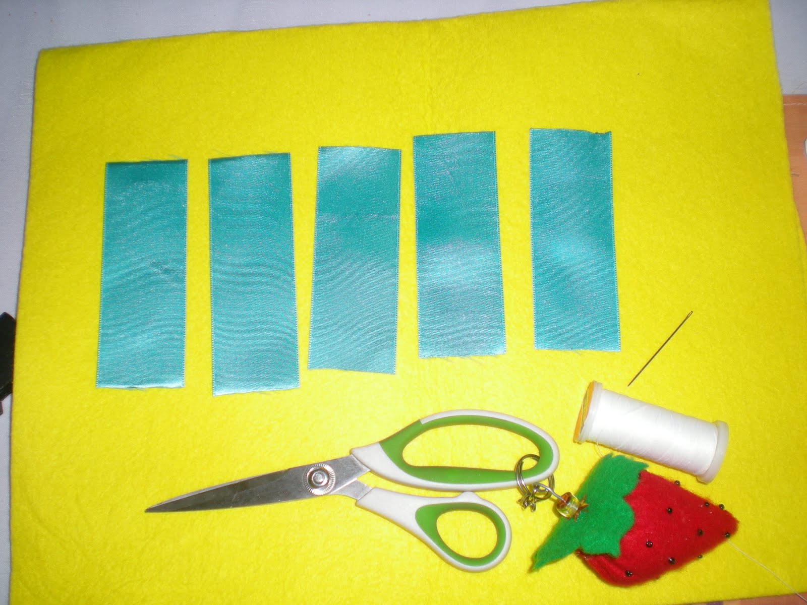 CORTAMOS CINCO TIRAS DE LISTON DE 6 CM. DE LARGO.